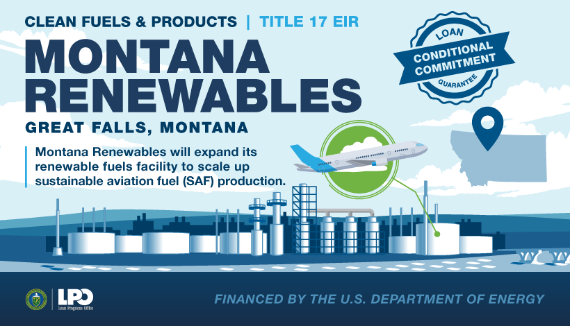 guarantee of $1.44 billion will help Montana Renewables expand their renewable fuels facility in Great Falls to use vegetable oils, fats, and greases to produce sustainable aviation fuel, renewable diesel, and renewable naphtha.
