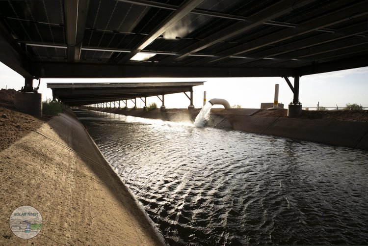 helping reduce evaporation from the canal by as much as 50%. Additionally, the cooling effect on the solar panels from the water below helps increase the efficiency of the panels.